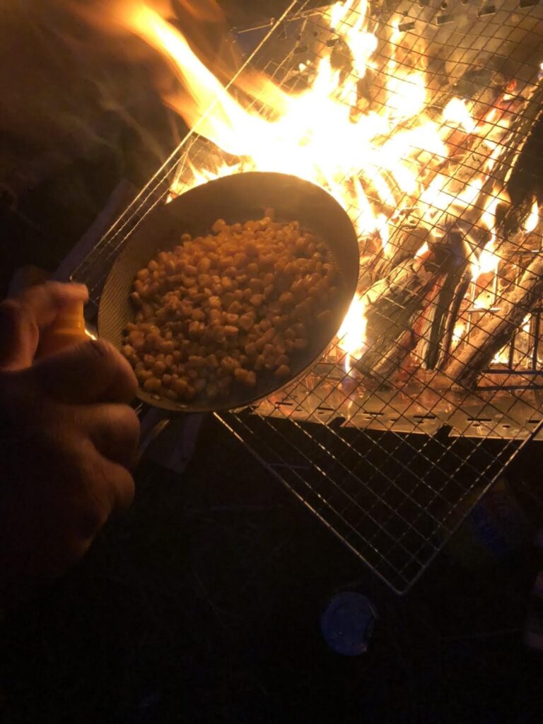 ご飯を炊き蒸らせている間にメインディッシュの焼肉の始まりです。(米を炊いてる間にバターコーンなどを食べています)