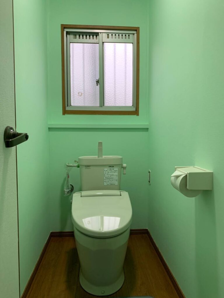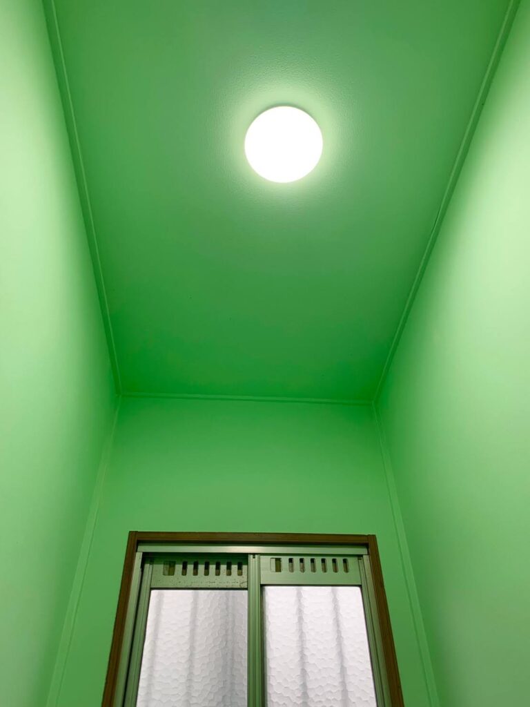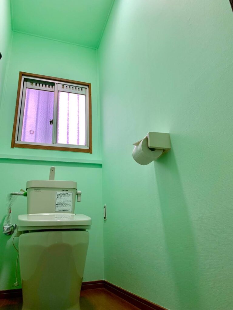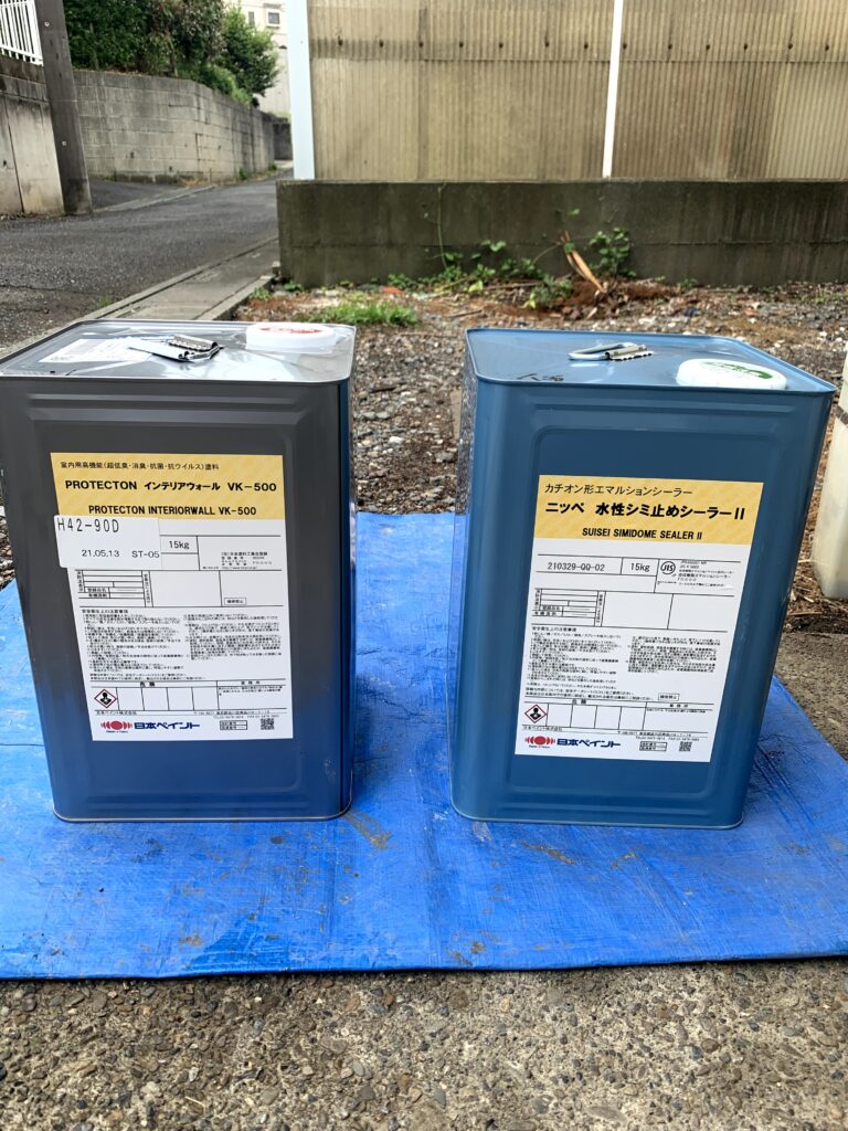 埼玉北支店のトイレは未だポットん式です。ですから暑くなる夏はどうしても匂いが気になります。消臭材を置いてもいまいちです・・・・悩んでいた所にいつもお世話になっている日本ペイントの中井さんから電話が・・・VK-500の抗ウィルス性・抗菌性・消臭性等の効果が期待できる塗料の消臭能力を実感してみないかとのこと!即答でYES!!と答え今回の実証実験となります。この商品淡彩色なら調色可能とのこと。私は迷わずH42-90Dを選択。薄い緑色です。