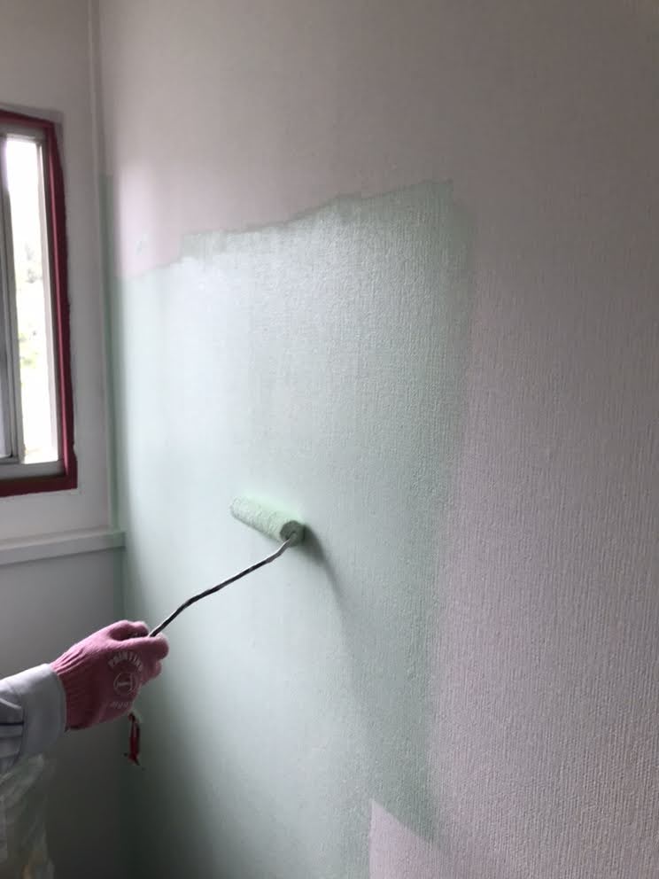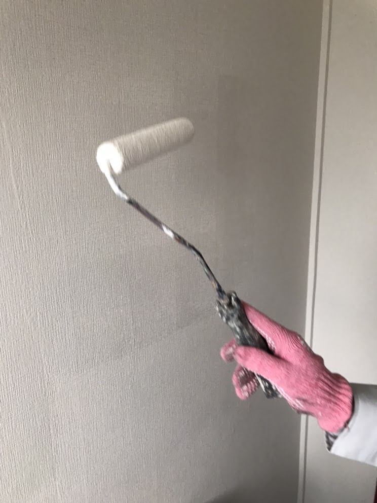 中塗り後乾燥時間をとっていよいよ仕上げです。上塗りは私が塗らせていただきました。